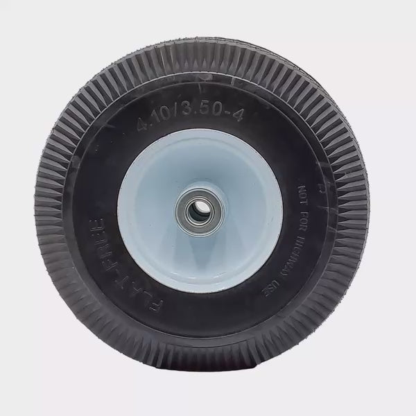 This Is a New Solid Foam Puncture Proof Tire, Size 4.10X3.50-4. It Has a Sawtooth Tread. Replaces Part Numbers 14302 and 4164205. White Wheel: 3.25" Centered Hub: 5/8", Semi-Precision Ball Bearings. Fits Walk Behind Blowers.