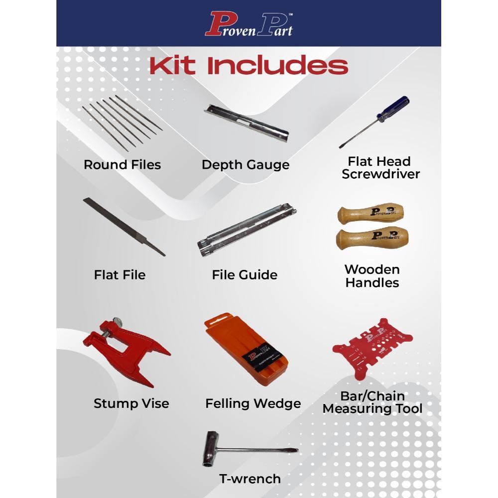 Proven Part 2-14" Chain 3610-005-0050Bar 3/8" LP .043" 50DL, 1 Qt Chain Bar Oil, Files Wedge Vise