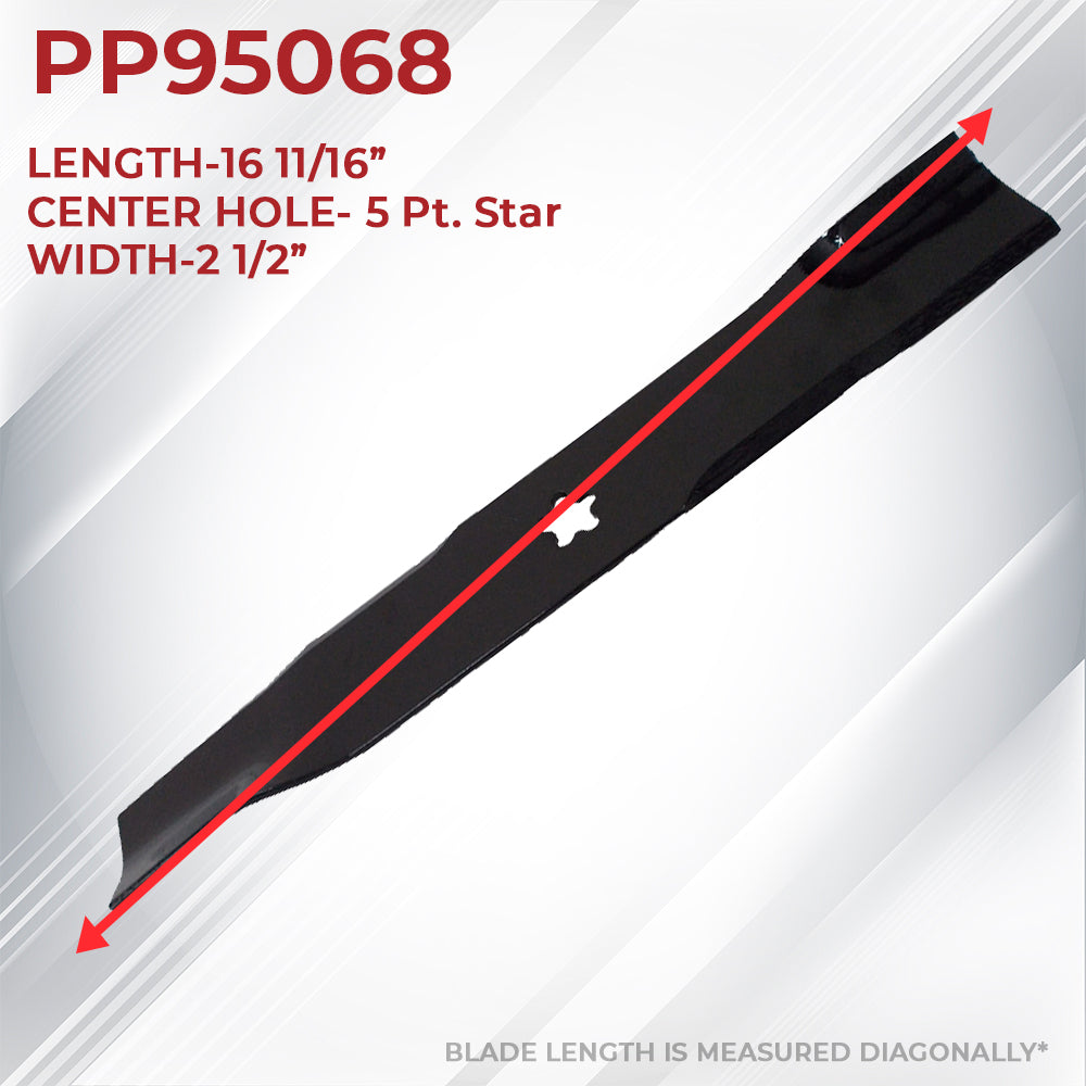 Blade Specifications: Width: 2.5", Length: 16-3/8", Center Hole 5 Point Star